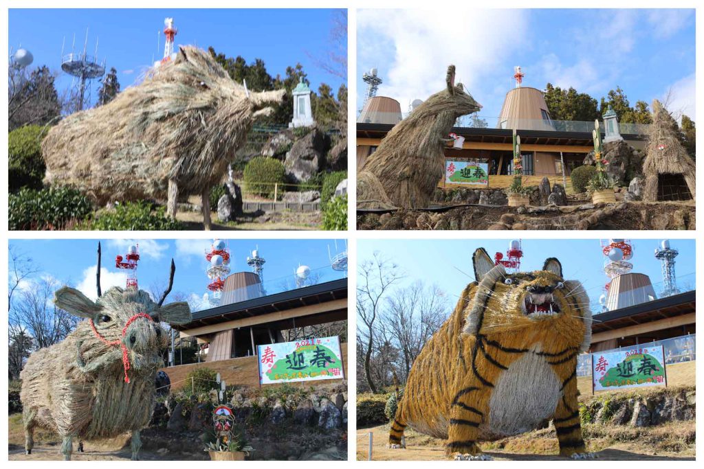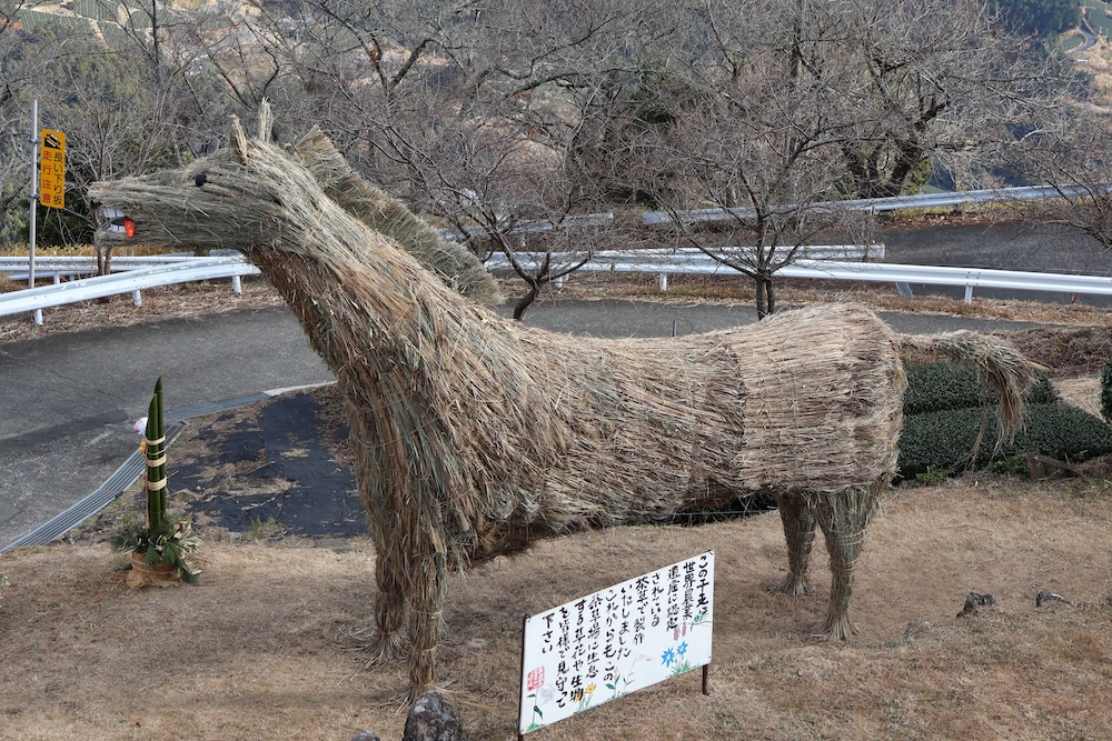 毎年12月になると、東山のお茶農家の人たちが、茶草場テラスの前に翌年の干支を茶草で作っています。
