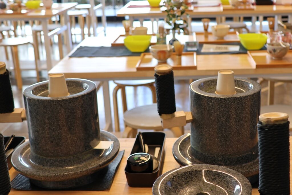 茶臼を使った抹茶づくりや、玉露の美味しい淹れ方、和菓子づくりといったお茶にまつわる体験をはじめ、お茶の木人形の絵付け、JAPANESE ZEN WORKSHOP、書道など、その内容は多岐にわたります。