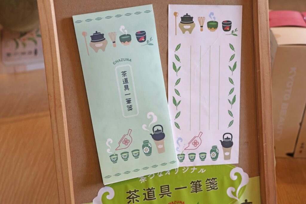 また、可愛らしいイラスト入りの「茶道具一筆箋」や、宇治茶染めのハンカチといった茶づなオリジナルグッズは、旅の思い出やお土産にぴったりです。