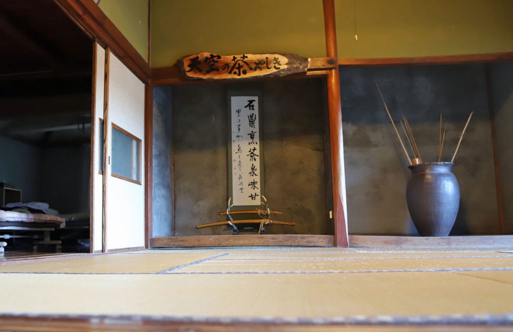 天空の茶屋敷は、八女茶発祥の地・福岡県八女市黒木町にある古民家のゲストハウスです。標高460メートルの山の上にあり周囲は茶畑に囲まれ、その名の通り「天空の茶屋敷」です。
