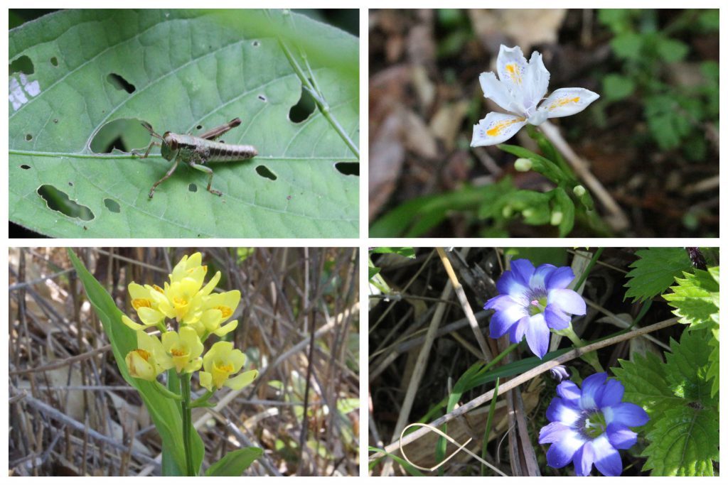 茶草場農法が盛んに行われている掛川市東山の粟ヶ岳では、カケガワフキバッタといった固有種や金蘭など、珍しい動植物が生息しています。さらに、ススキやササなど背の高い草を刈ることで、山が荒れることを防ぎ、山の保全に繋がります。