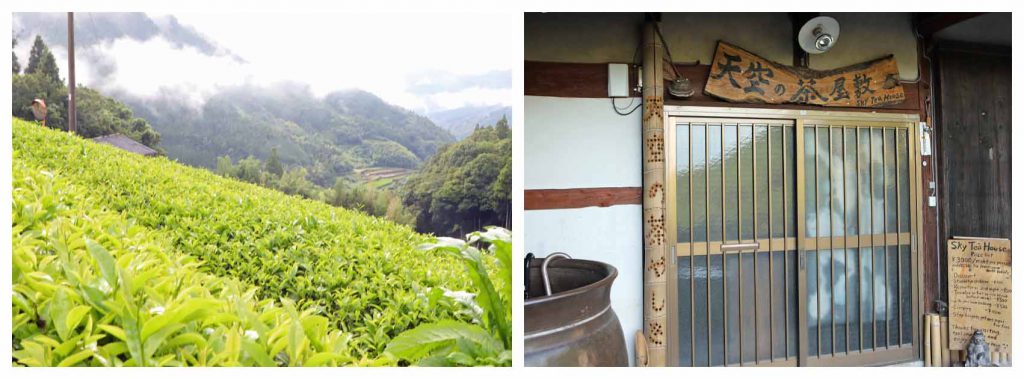 黒木町には八女茶発祥の霊巌寺、茶畑に囲まれたゲストハウス「天空の茶屋敷」があります。天空の茶屋敷では、お茶摘み体験などができます。