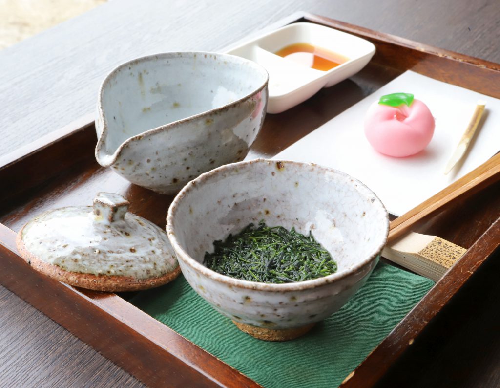 八女伝統本玉露しずく茶は、お茶を飲み茶葉を食べることができます。茶葉はとてもやわらかく、醤油や塩でいただきました。