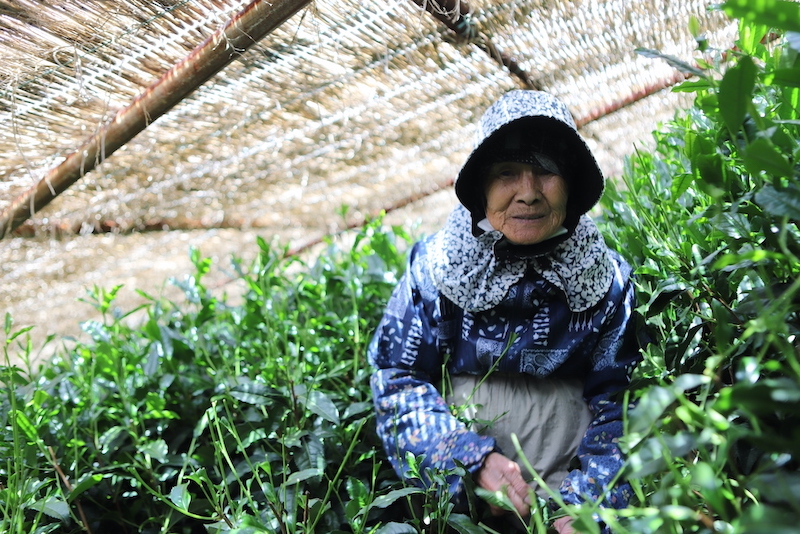 八女伝統本玉露は、お茶の木を自然の形で育て、茶葉を摘み取る前に、稲わらで編んだすまきで茶園全体を覆います。そして徐々に茶園の遮光率を最終的には90から98%にするなど厳しい条件で栽培されています。