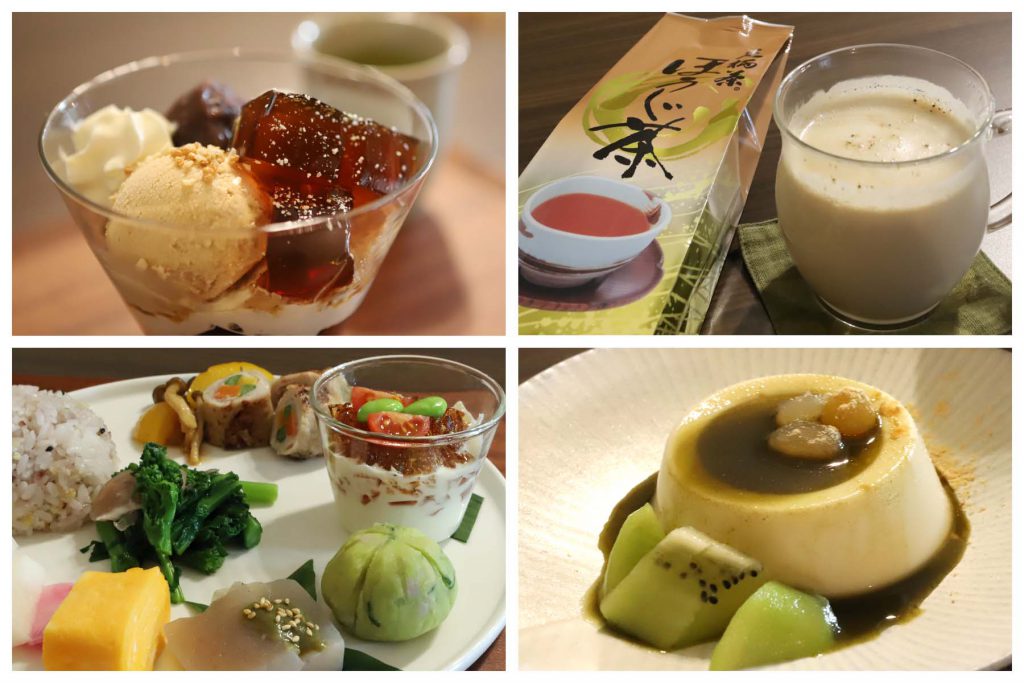 Types of tea: Sencha (medium steamed green tea), hojicha (roasted steamed green tea), black tea, powdered tea, tencha, matcha, etc.